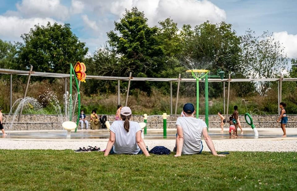 Répondant aux normes de sécurité et dotée d’un revêtement antidérapant, cet espace familial et ludique a été conçu sur le principe de la pataugeoire sèche, c’est-à-dire qu’il n’y a pas de retenue d’eau en surface. L’eau est récupérée dans une cuve et réutilisée par les services Espaces Paysagers et Propreté de la Ville de Troyes.